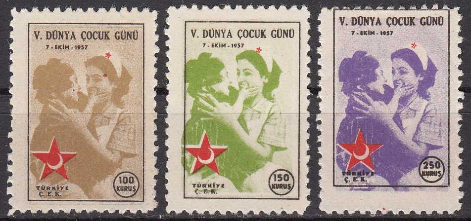1957 V. DÜNYA ÇOCUK GÜNÜ DAMGASIZ ZAMKLI ŞARNİYERLİ TAM SERİ KATALOG: 275 TL