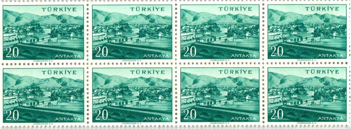 1958 - 60 MEMLEKET SERİSİ ANTAKYA 20K 8Lİ BLOK MNH