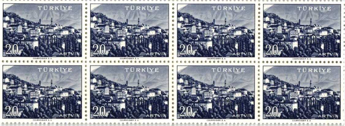 1958 - 60 MEMLEKET SERİSİ ARTVİN 20K 8Lİ BLOK MNH