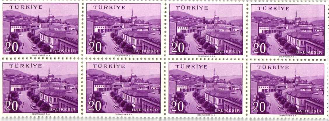 1958 - 60 MEMLEKET SERİSİ BALIKESİR 20K 8Lİ BLOK MNH