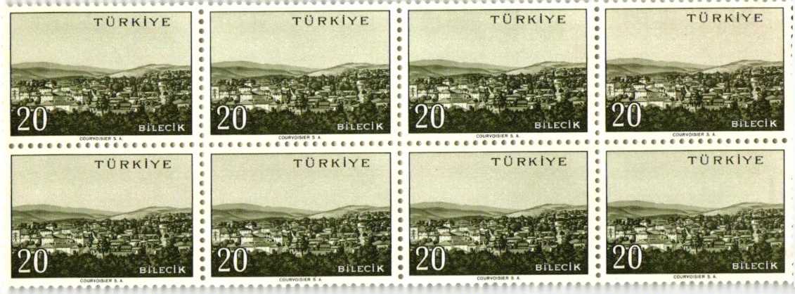 1958 - 60 MEMLEKET SERİSİ BİLECİK 20K 8Lİ BLOK MNH