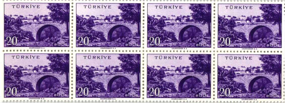 1958 - 60 MEMLEKET SERİSİ BİTLİS 20K 8Lİ BLOK MNH