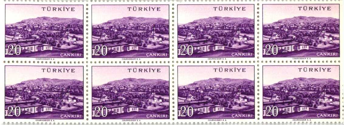 1958 - 60 MEMLEKET SERİSİ ÇANKIRI 20K 8Lİ BLOK MNH