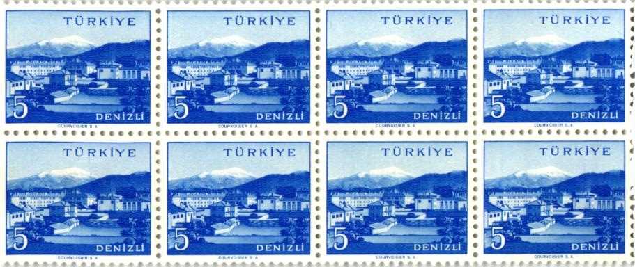 1958 - 60 MEMLEKET SERİSİ DENİZLİ 5K 8Lİ BLOK MNH