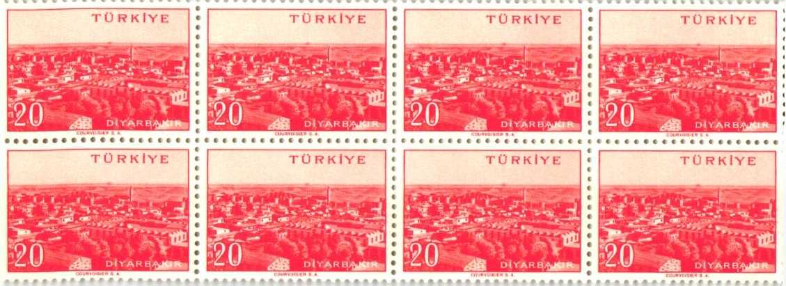 1958 - 60 MEMLEKET SERİSİ DİYARBAKIR 20K 8Lİ BLOK MNH