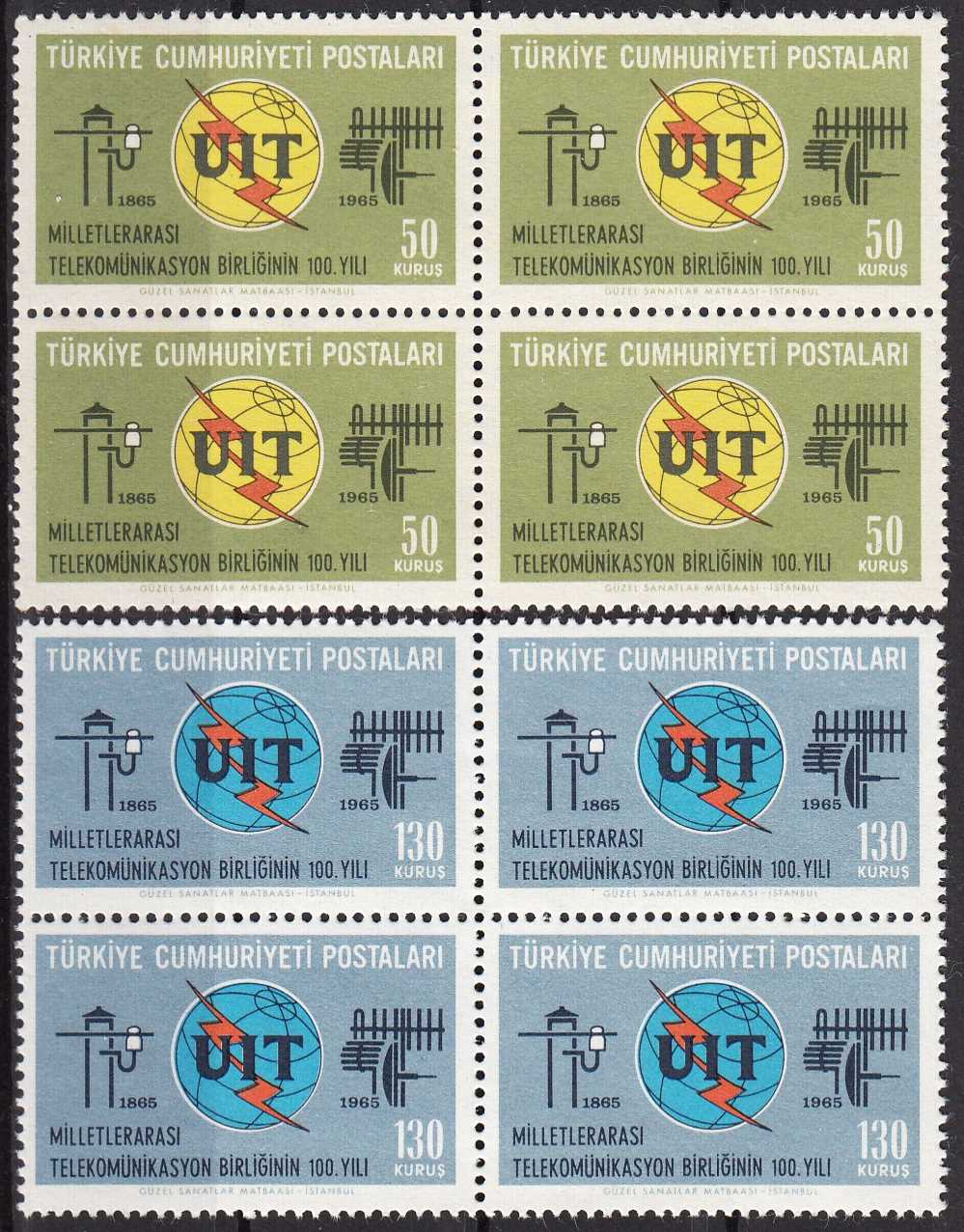 1965 UIT. ULUSLAR ARASI TELEKOMİNİKASYON BİRLİĞİNİN 100. YILI TAM SERİ DBL MNH KATALOG: 60 TL