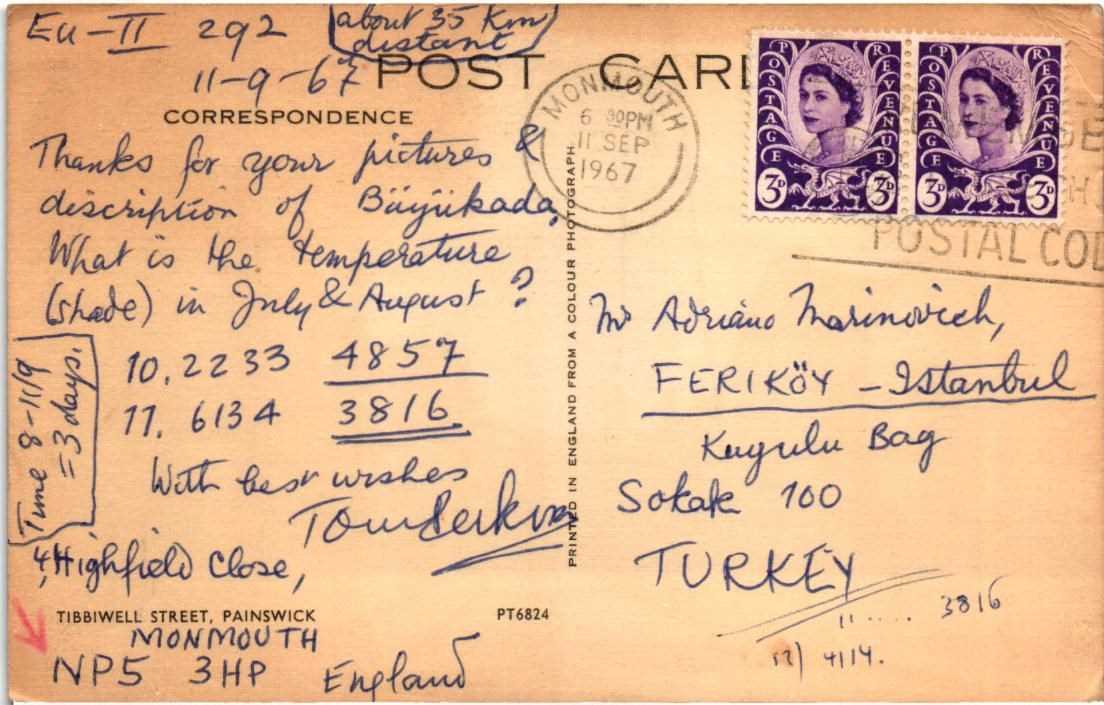 1967 İNGİLTERE POSTADAN GEÇMİŞ KARTPOSTAL
