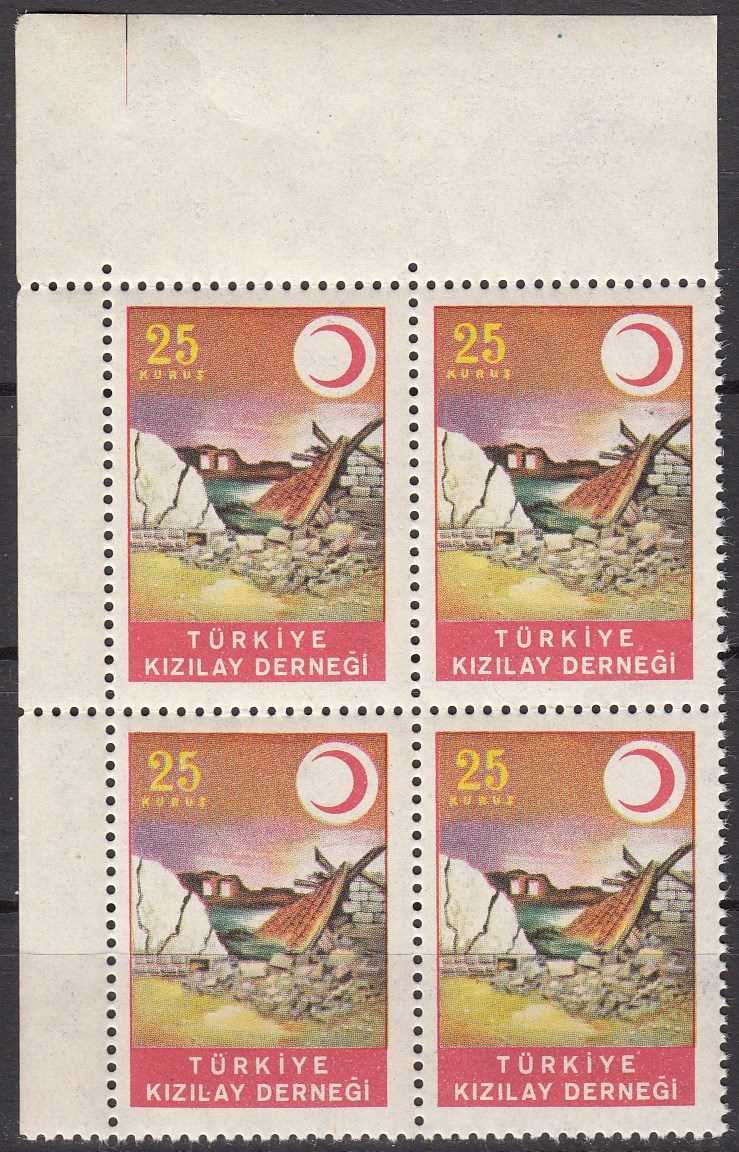 1967 TÜRKİYE KIZILAY DERNEĞİ YARDIM PULLARI 25 KURUŞ KY30 KÖŞE DBL MNH