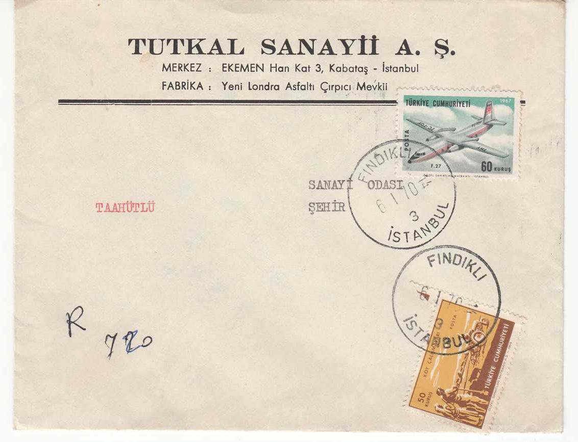 1970 FINDIKLI ÇIKIŞ BEYOĞLU VARIŞ DAMGALI ZARF