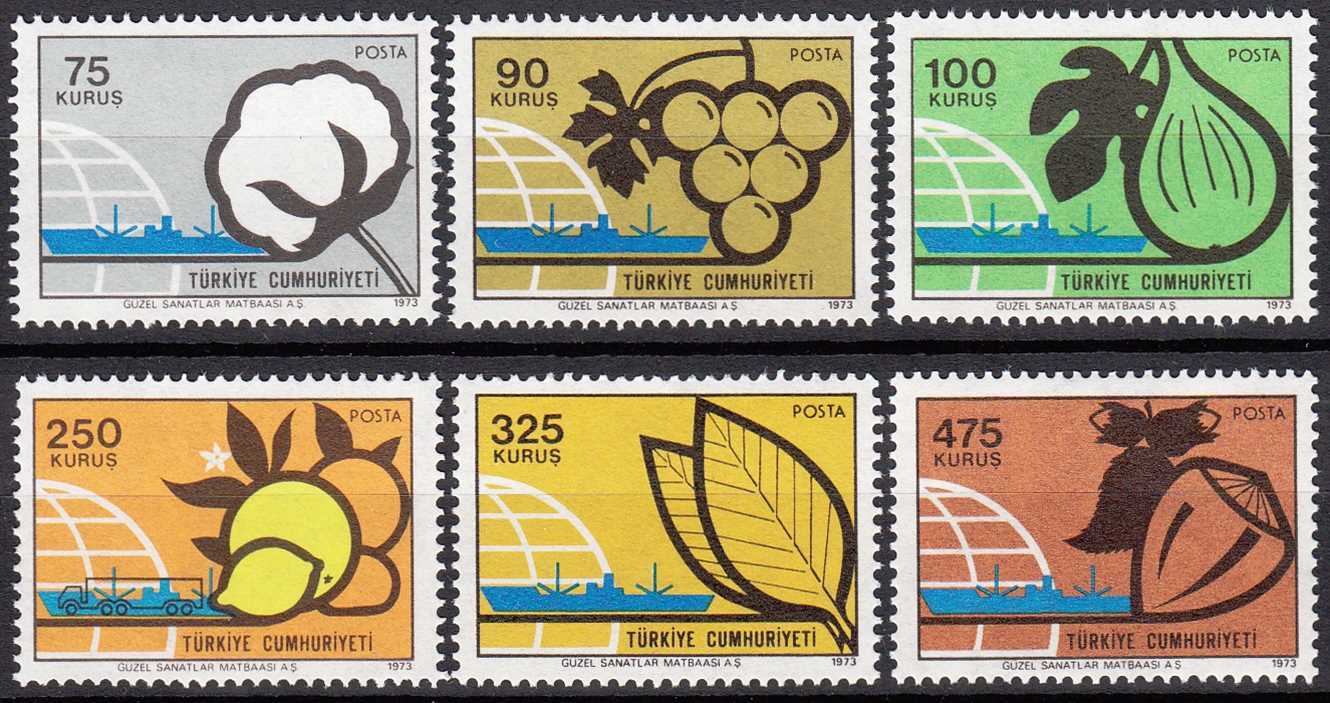 1973 İHRAÇ ÜRÜNLERİ KONULU SÜREKLİ SERİ TAM SERİ MNH KATALOG: 175 TL