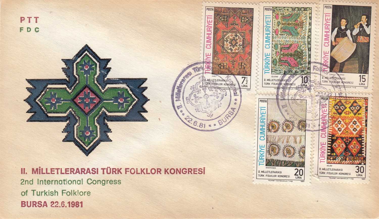 1981 II. MİLLETLERARASI TÜRK FOLKLÖR KONGRESİ TAM SERİ FDC KATALOG: 85 TL