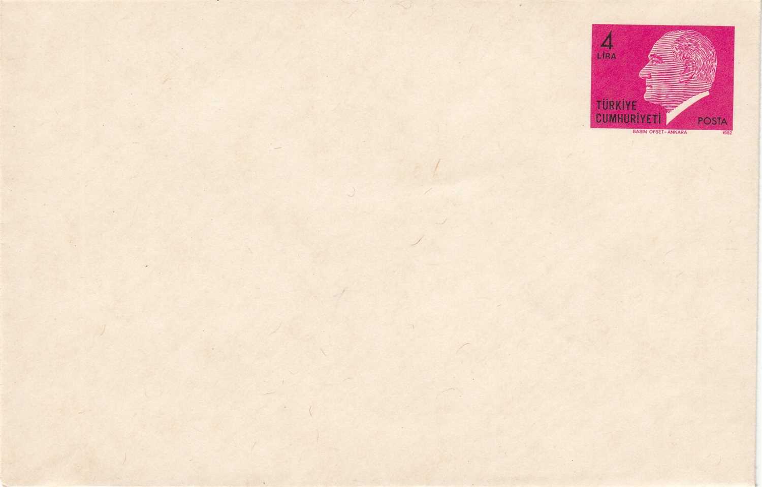 1982 4 LİRA MACENTA VE SİYAH ANTİYE ZARF AN246 KATALOG: 45 TL