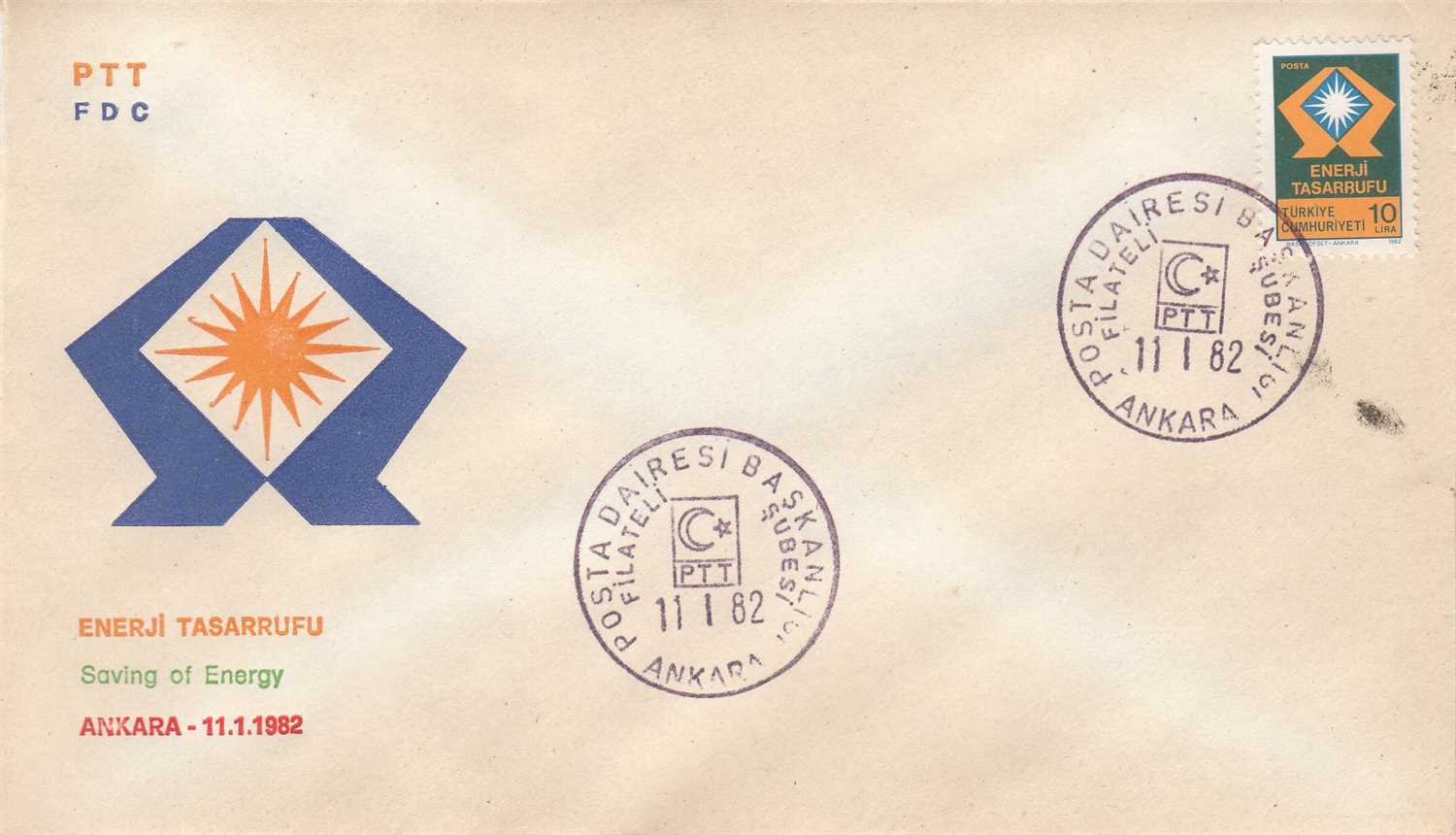 1982 ENERJİ TASARRUFU KONULU SÜREKLİ POSTA PULU FDC
