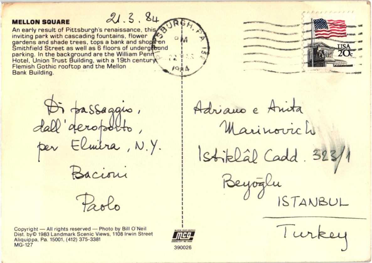 1984 AMERİKA POSTADAN GEÇMİŞ KARTPOSTAL