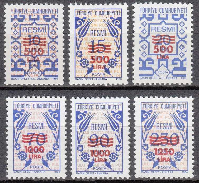 1989 SÜRŞARJLI RESMİ PULLAR TAM SERİ MNH KATALOG: 1.500 TL
