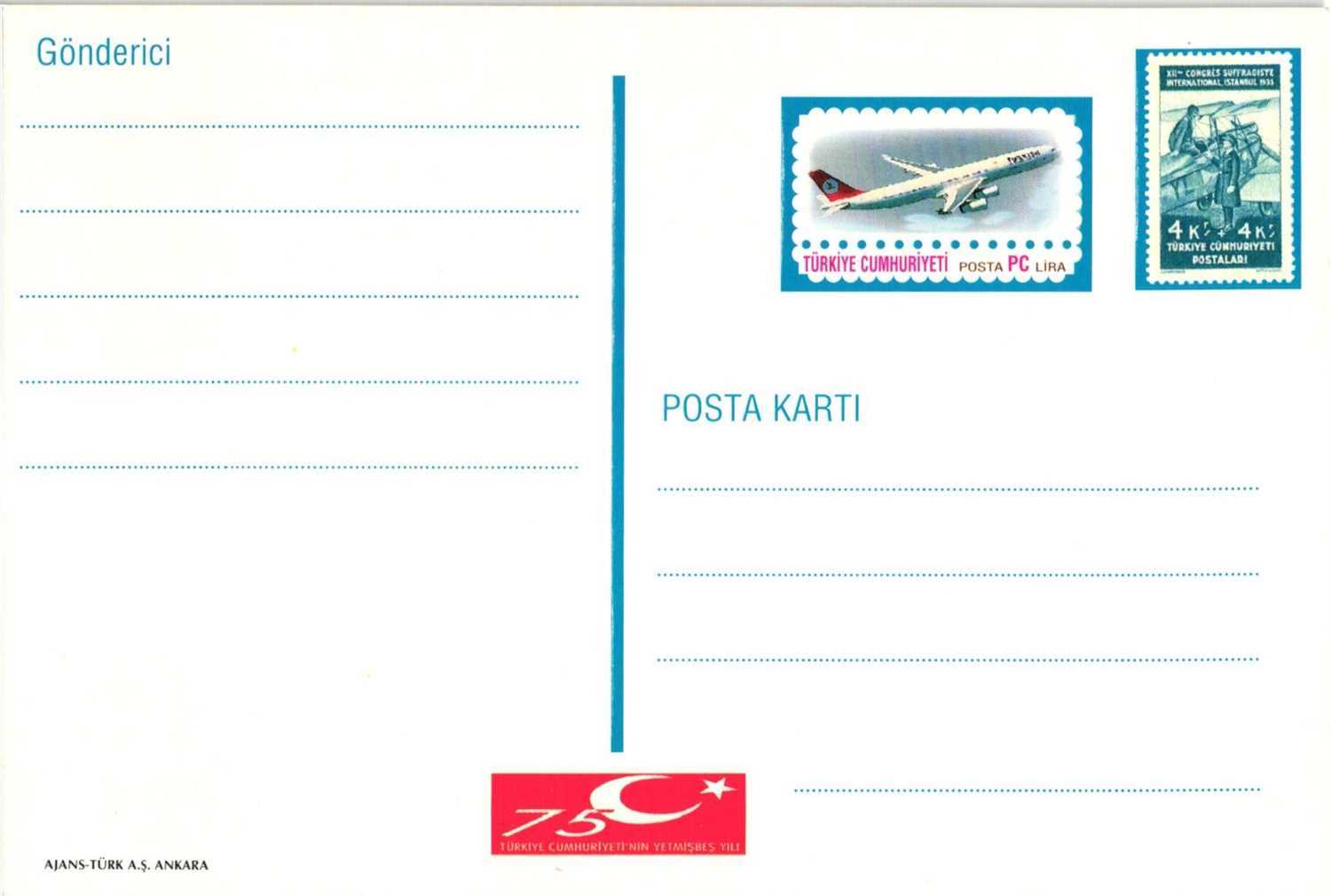 1998 29 EKİM UÇAK TEMALI POSTA KARTI AN303 KATALOG: 175 TL
