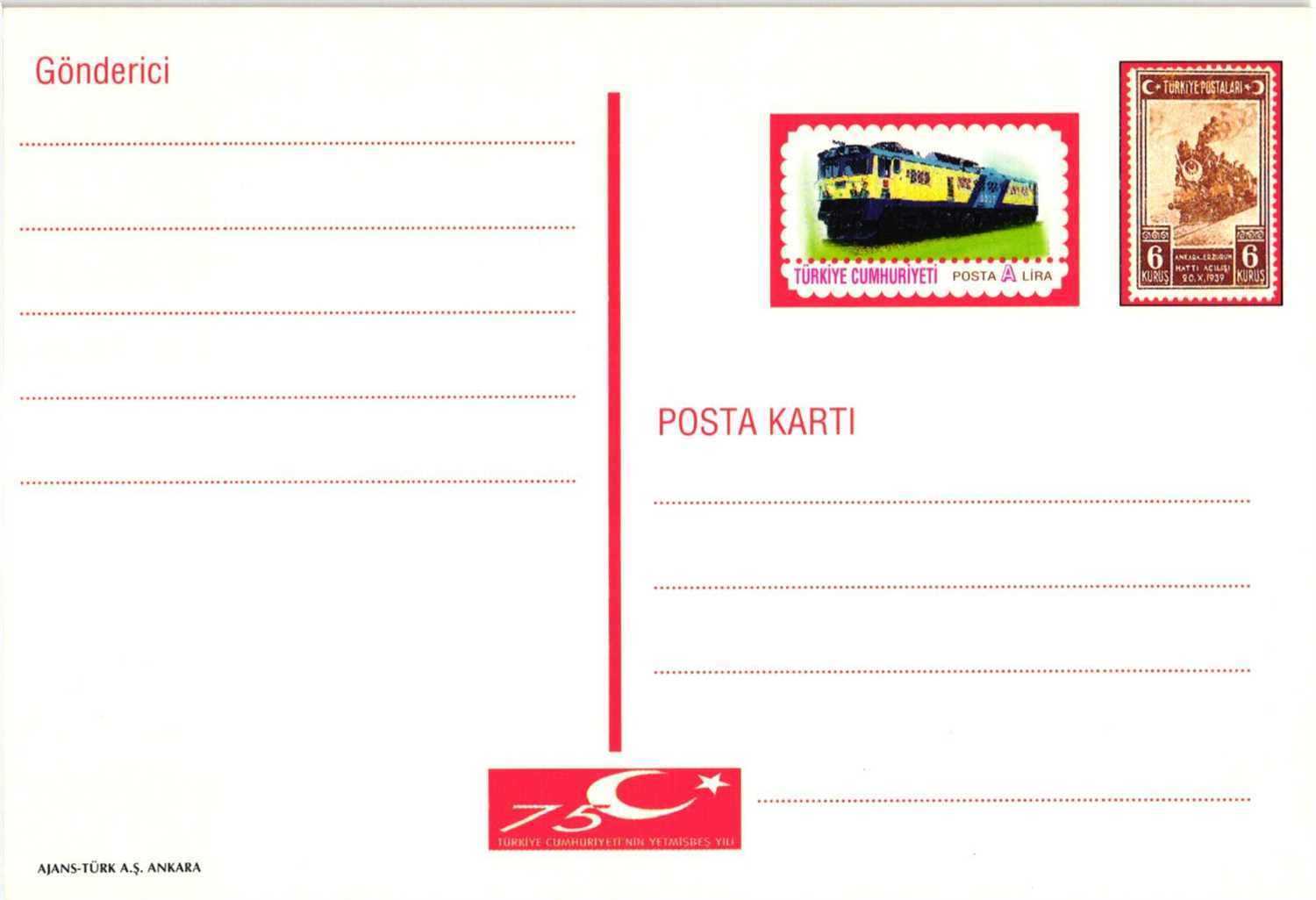 1998 A TREN TEMALI POSTA KARTI CUMHURİYETİN 75. YILI AN302 KATALOG: 175 TL