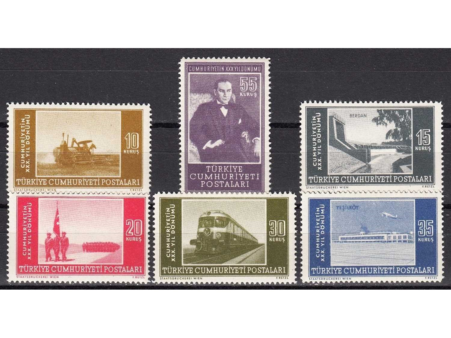 1953 CUMHURİYET İN OTUZUNCU YILDÖNÜMÜ TAM SERİ MNH KATALOG: 160 TL