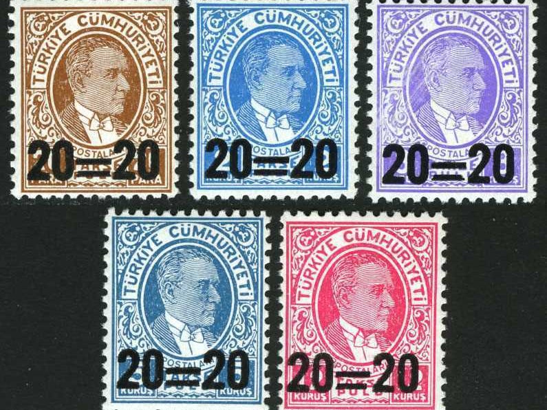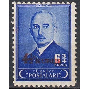 1943 4.5 KURUŞ SÜRŞARJLI POSTA PULU TAM SERİ MNH