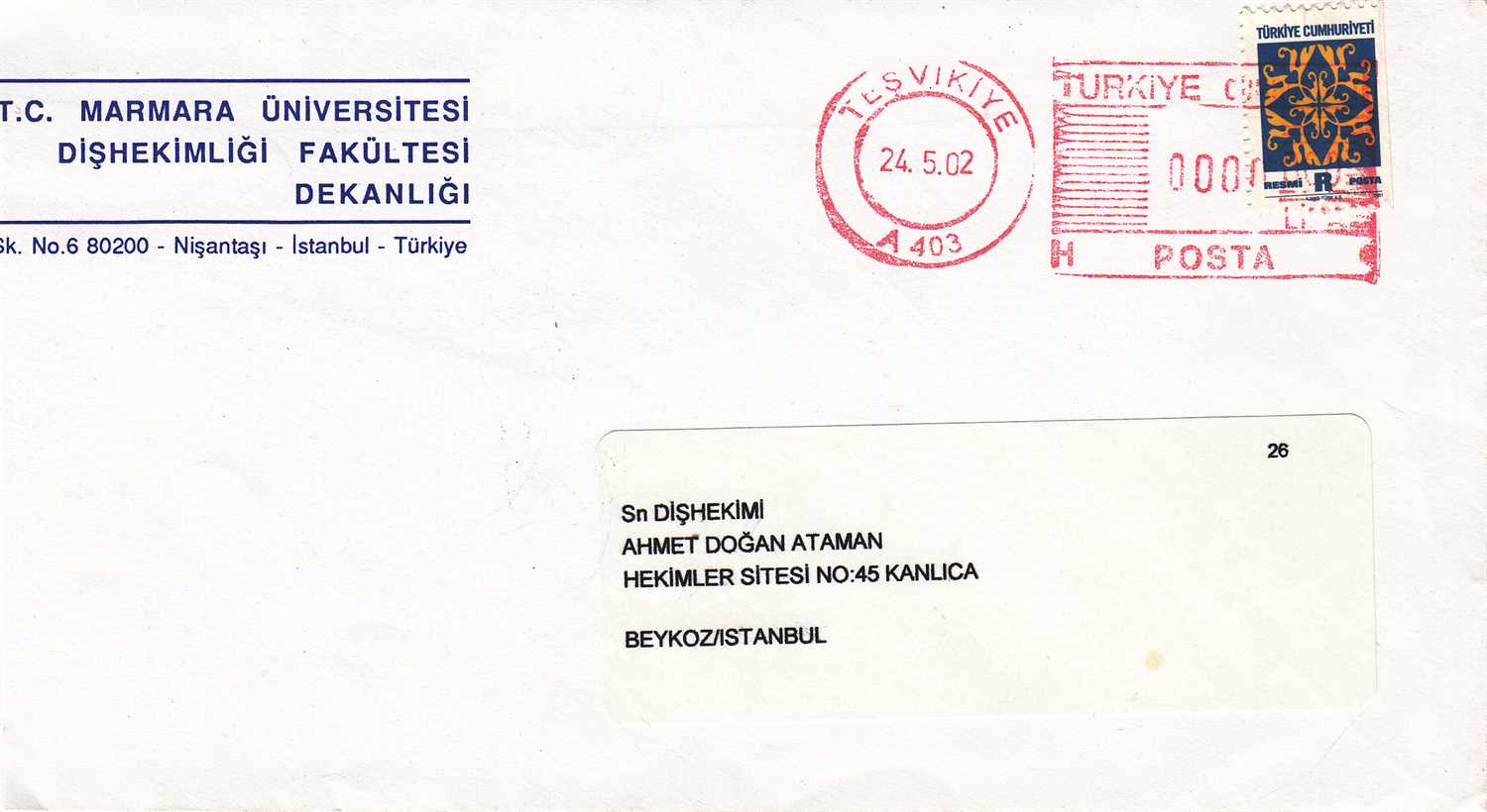 2002 TEŞVİKİYE FLAMLI RESMİ PULLU POSTADAN GEÇMİŞ ZARF
