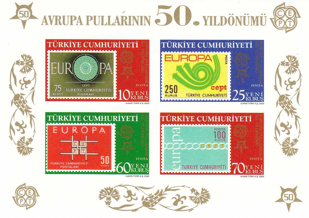 2005 AVRUPA PULLARININ 50. YILDÖNÜMÜ HATIRA BLOK MNH