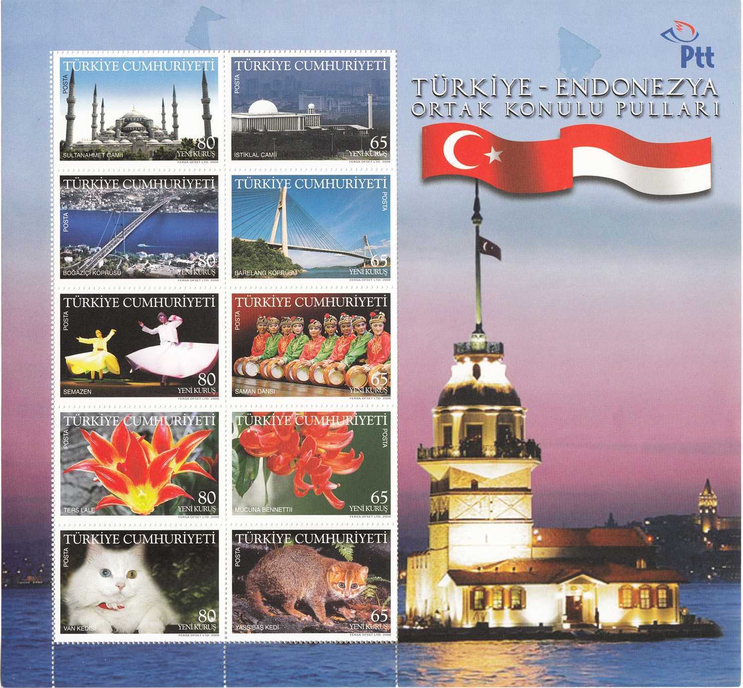 2008 TÜRKİYE - ENDONEZYA ORTAK KONULU PULLARI ANMA BLOĞU MNH KATALOG: 400 TL