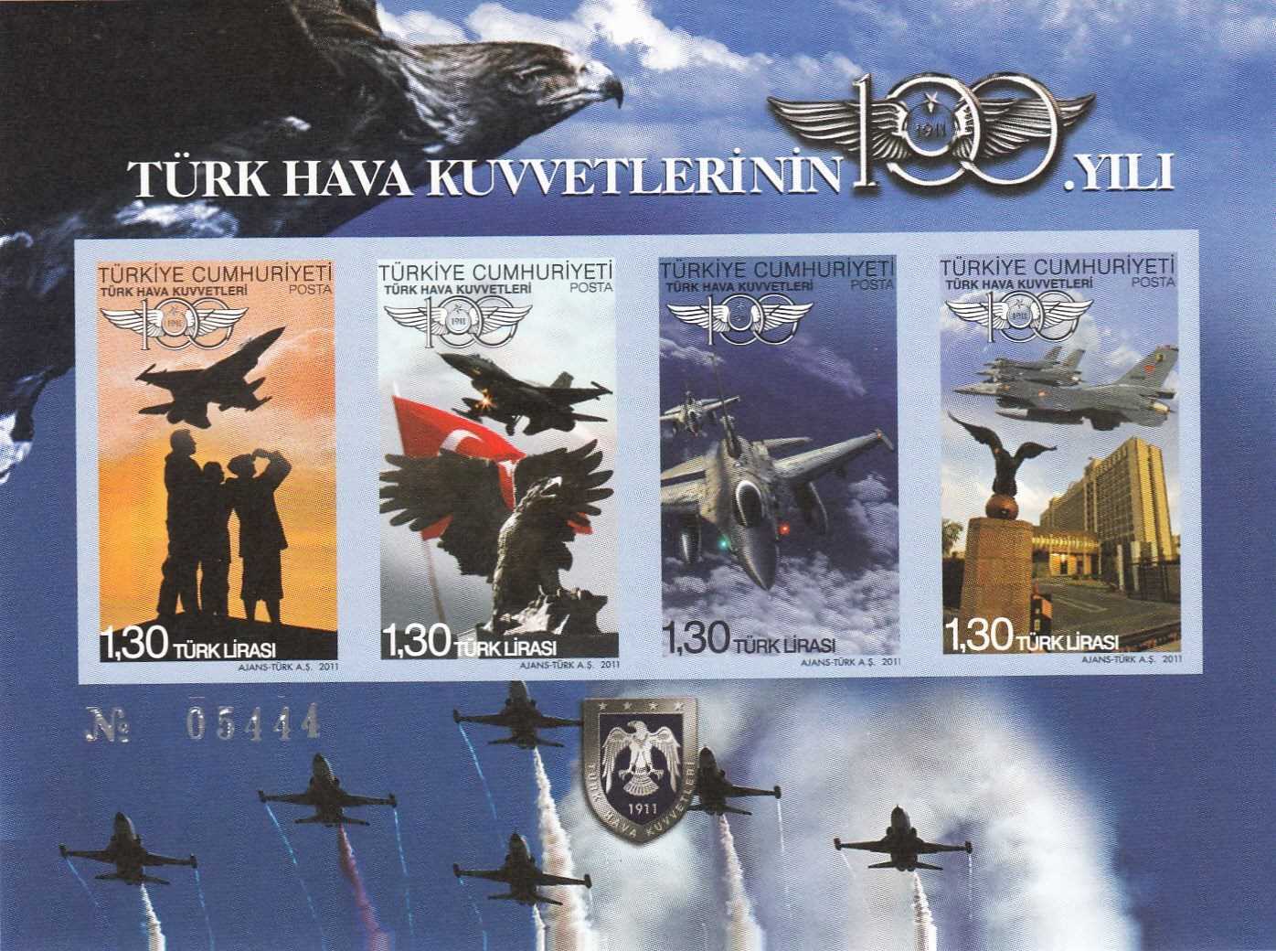 2011 TÜRK HAVA KUVVETLERİNİN 100. YILI DANTELSİZ NUMARALI BLOK MNH KATALOG: 500 TL