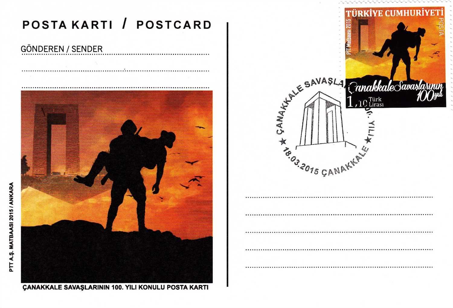2015 1.10 LİRA PULLU ÇANAKKALE SAVAŞLARININ 100. YILI ÖZEL DAMGALI POSTA KARTI