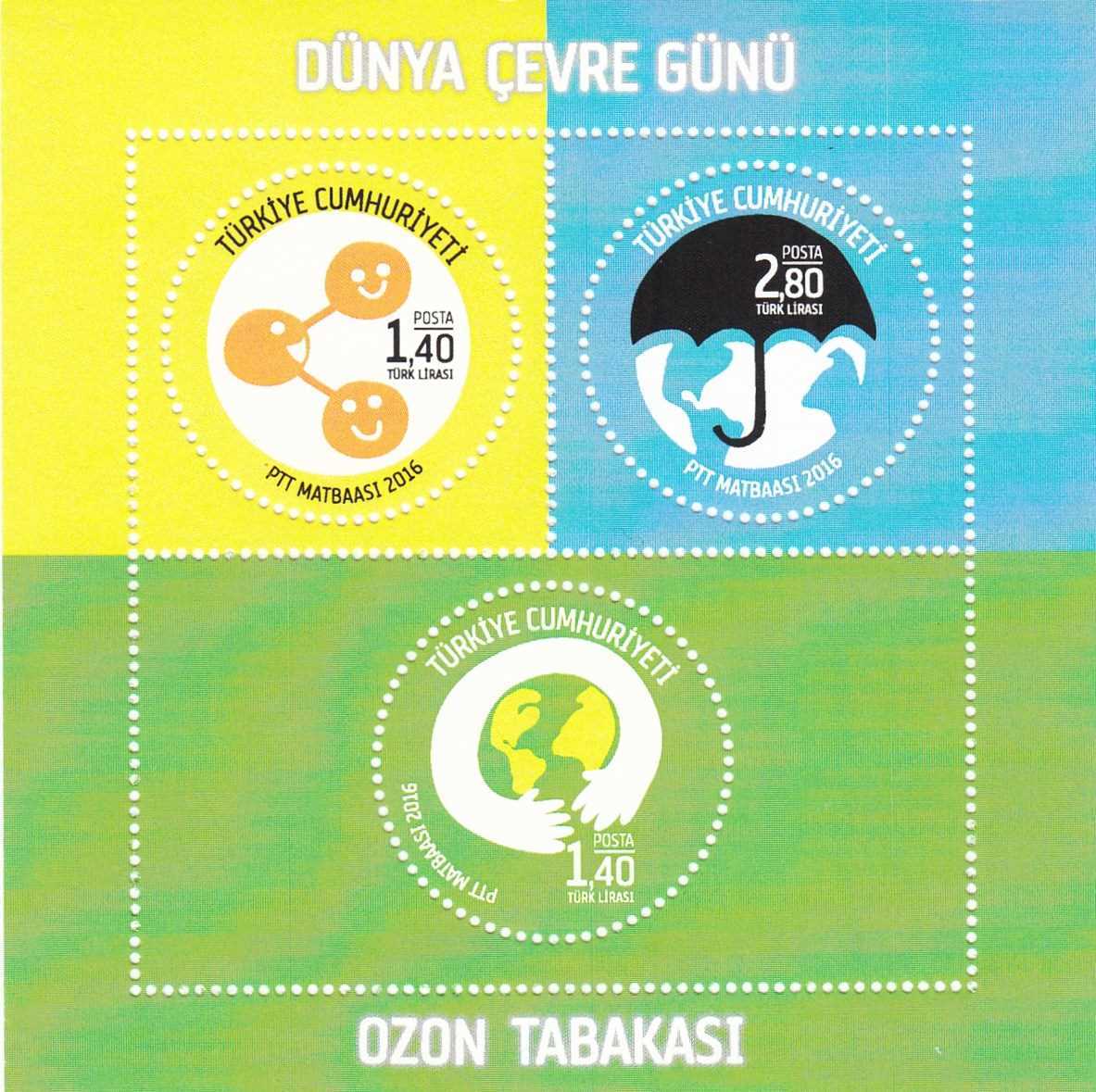 2016 DÜNYA ÇEVRE GÜNÜ (OZON TABAKASI) ANMA BLOĞU MNH KATALOG: 100 TL