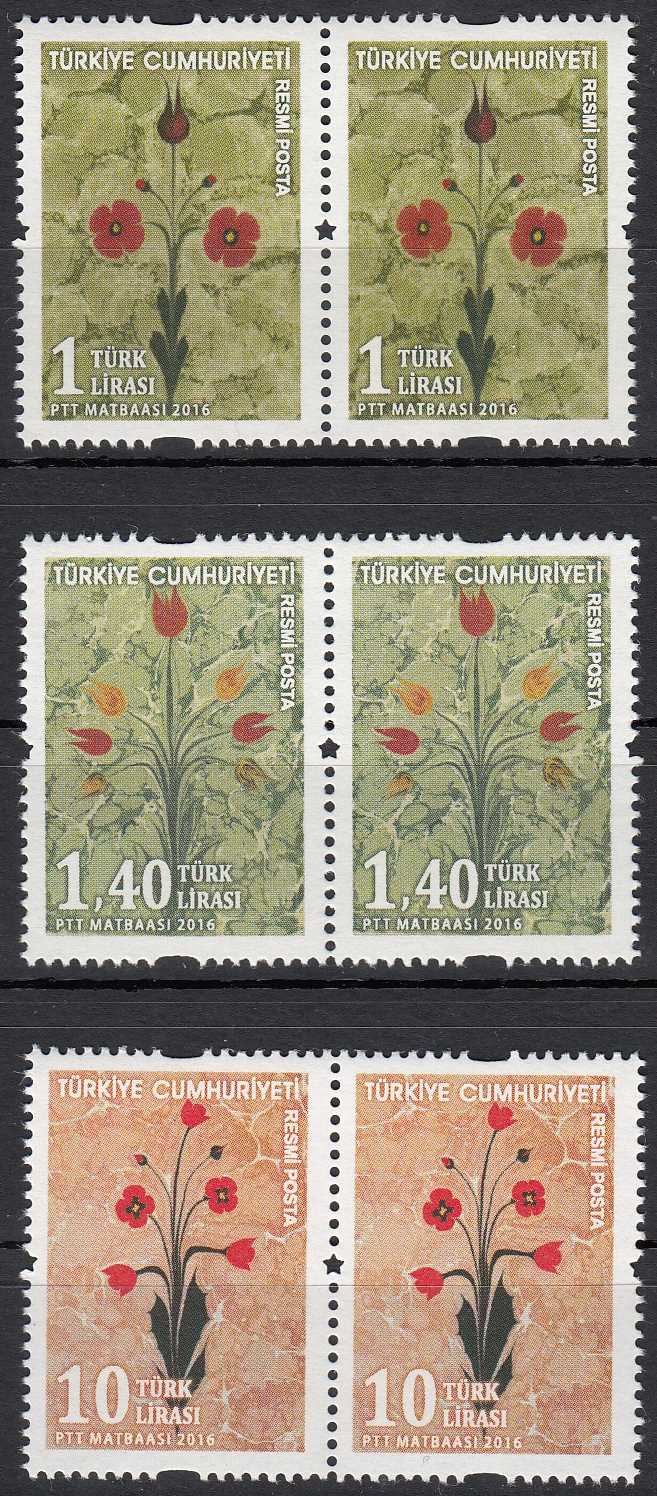 2016 EBRU KONULU RESMİ POSTA PULLARI TAM SERİ İKİLİ PER MNH KATALOG: 300 TL