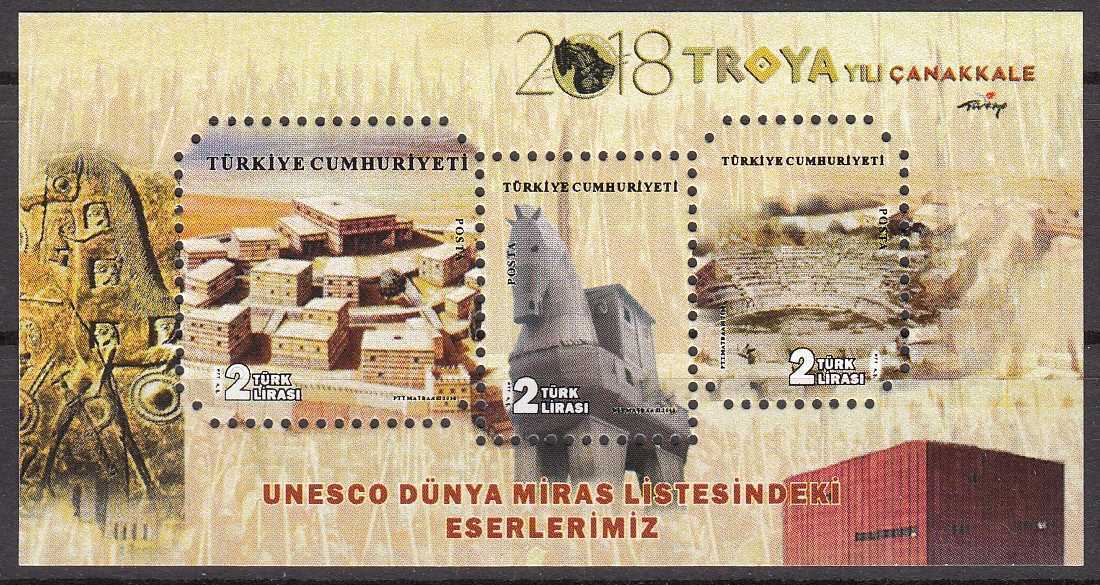 2018 TROYA YILI ÇANAKKALE - UNESCO DÜNYA MİRAS LİSTESİNDEKİ ESERLERİMİZ BLOK MNH
