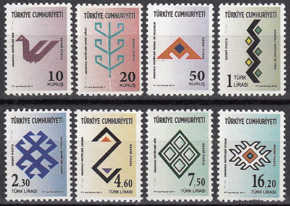 2019 ANADOLU MOTİFLERİ - 2 KONULU RESMİ POSTA PULLARI TAM SERİ (20K KATLI, 16L ZAMK İZLİ