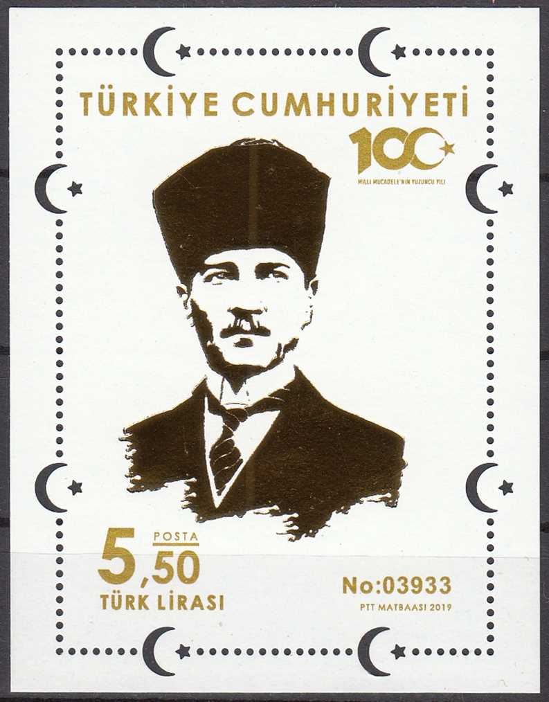 2019 ATATÜRK ÜN ANKARA YA GELİŞİNİN 100. YILDÖNÜMÜ NUMARALI BLOK MNH