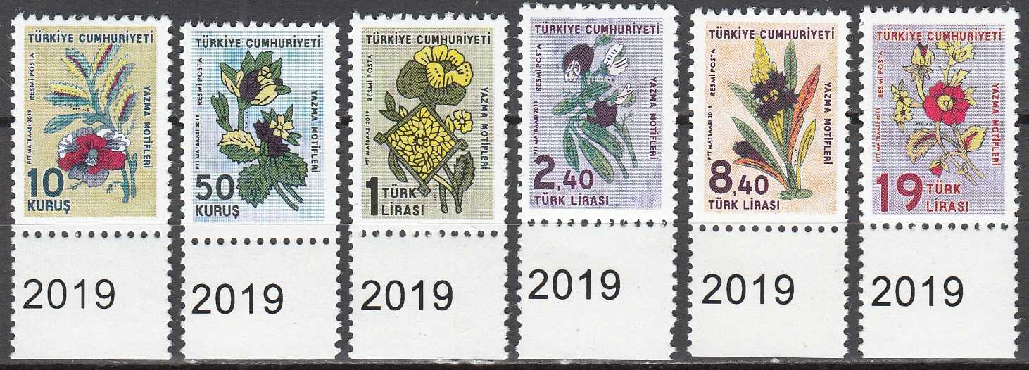 2019 YAZMA MOTİFLERİ KONULU RESMİ POSTA PULLARI TAM SERİ MNH KATALOG: 170 TL