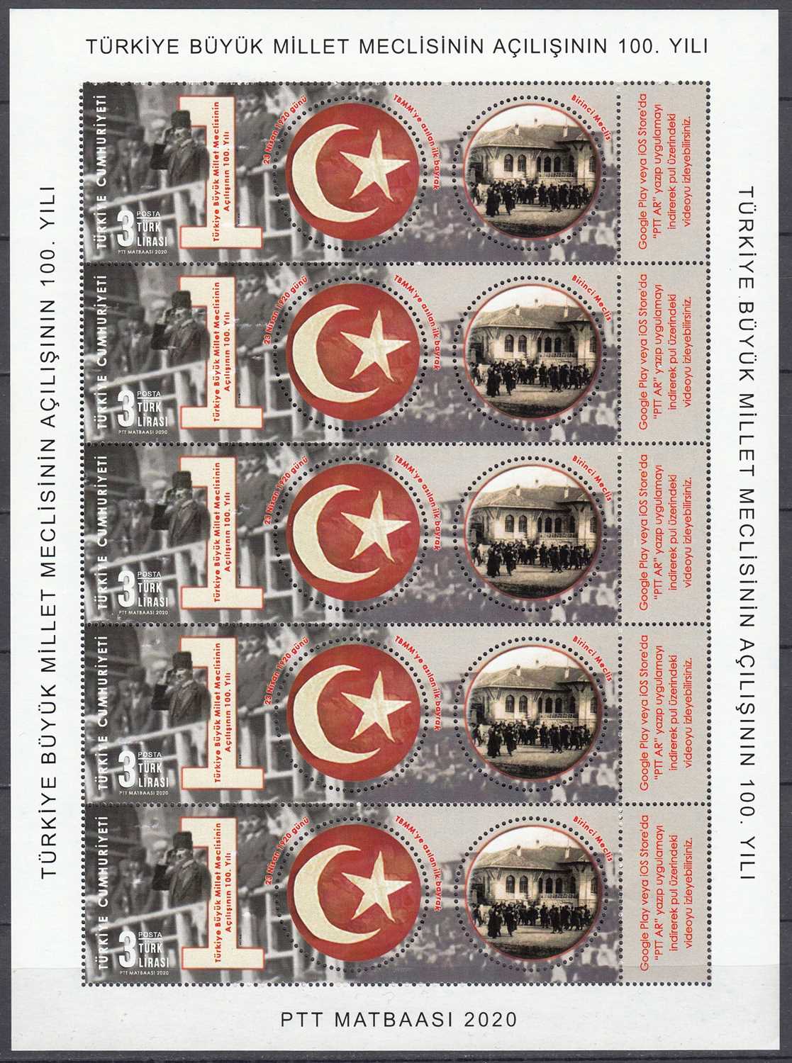 2020 TÜRKİYE BÜYÜK MİLLET MECLİSİNİN AÇILIŞININ 100. YILI TAM TABAKA MNH