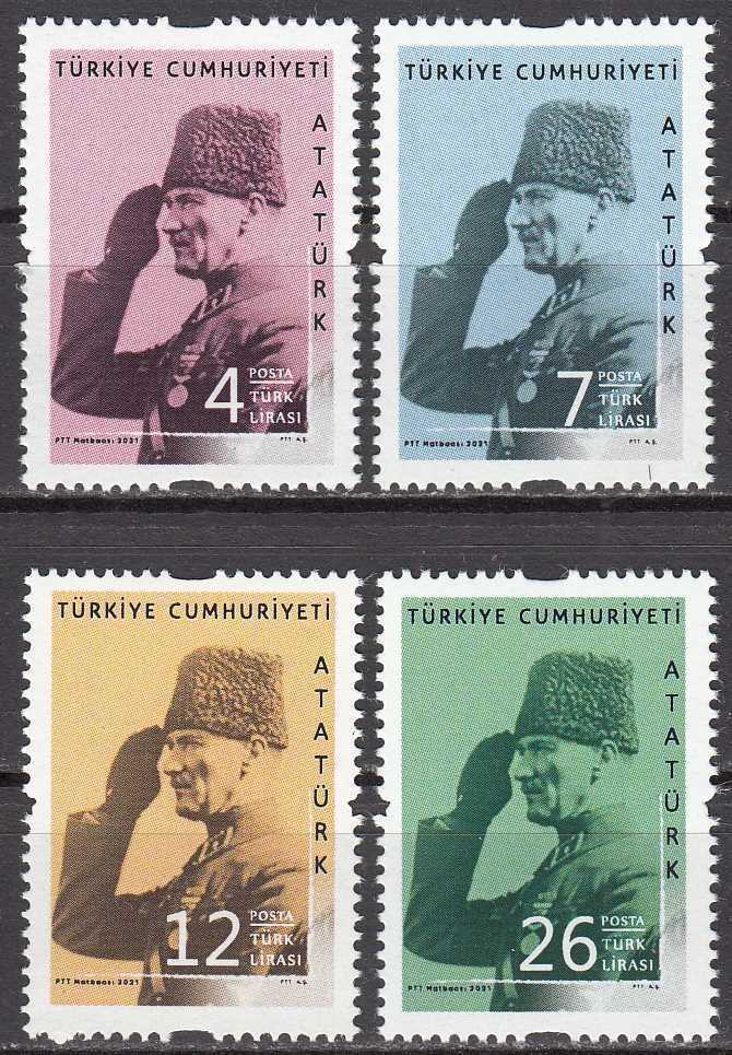 2021 ATATÜRK KONULU SÜREKLİ POSTA PULLARI TAM SERİ MNH KATALOG: 350 TL
