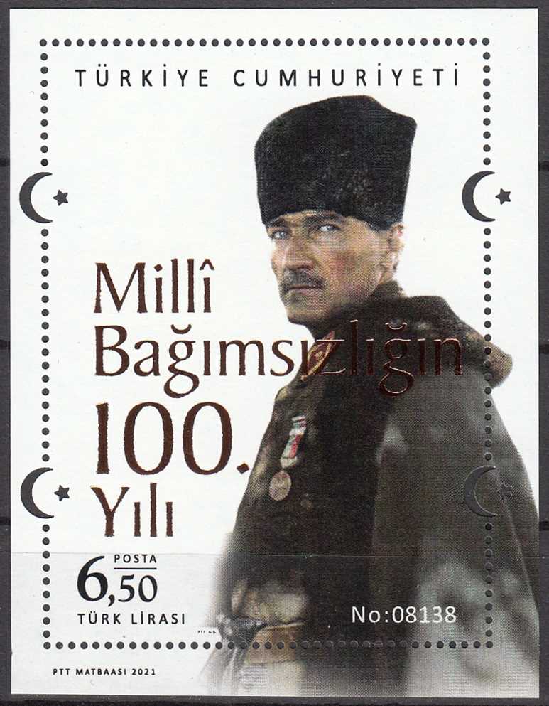 2021 MİLLİ BAĞIMSIZLIĞIN 100. YILI NUMARALI BLOK MNH