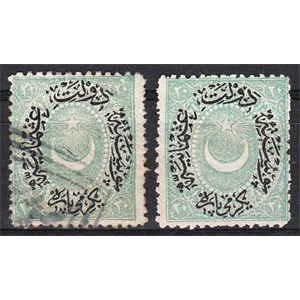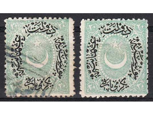 1875 AYYILDIZLI DULOZ 20P YEŞİL POSTA PULU IV. TİP DAMGALI - DAMGASIZ GOMSUZ 2 TAM SERİ