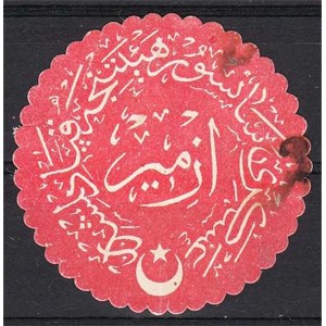 1920 İZMİR SANSÜR HEYETİ POSTA VE TELGRAF KIRMIZI AYYILDIZLI KAPAMA ETİKETİ