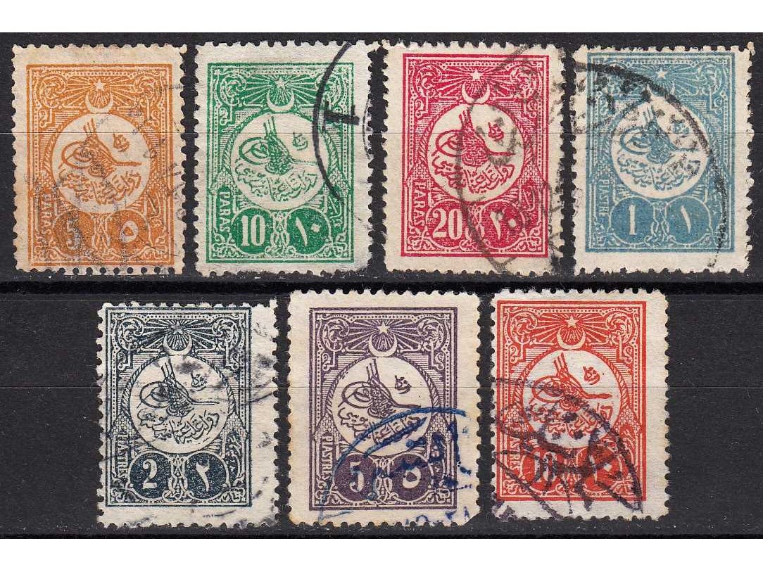 1908 SULTAN II. ABDÜLHAMİD SÜRŞARJLI HARİCİ POSTA PULLARI DAMGALI TAM SERİ KATALOG: 475 TL