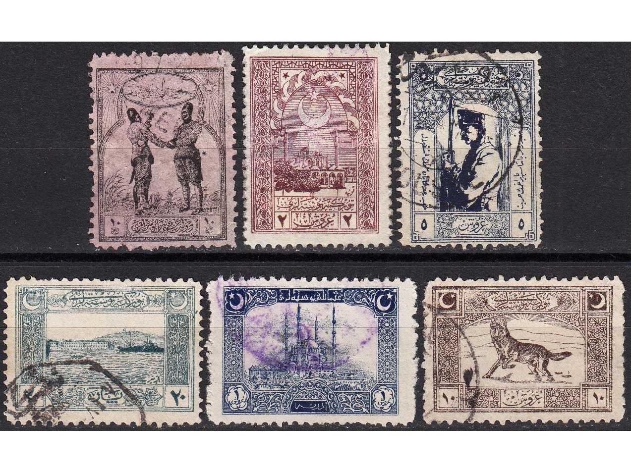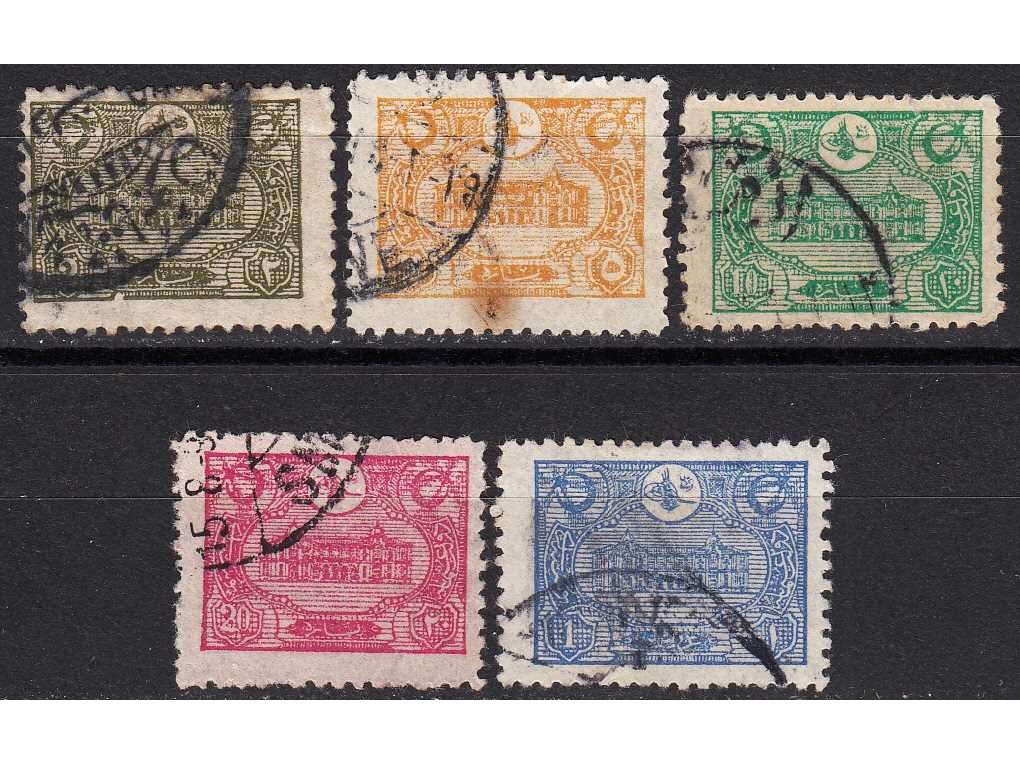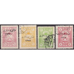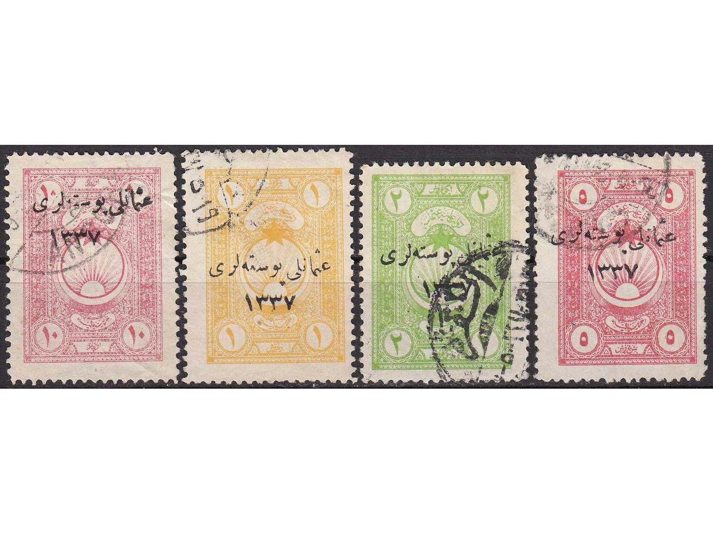 1921 OSMANLI MALİYE FİSKAL PULLARI ÜZERİNE OSMANLI POSTALARI 1337 SÜRŞARJLI PULLAR DAMGALI TAM SERİ KATALOG: 300 TL