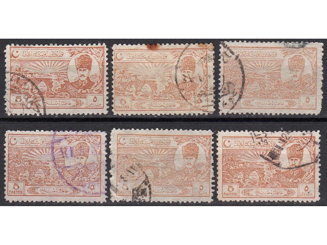 1924 LOZAN SULH ANTLAŞMASI HATIRA PULLARI 5 KURUŞ DAMGA ÖRNEKLERİ 6 ÇEŞİT KATALOG: 900 TL