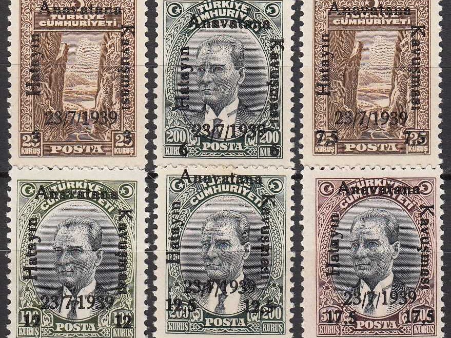 1939 HATAY'IN ANAVATANA KAVUŞMASI DAMGASIZ ZAMKLI ŞARNİYERLİ TAM SERİ