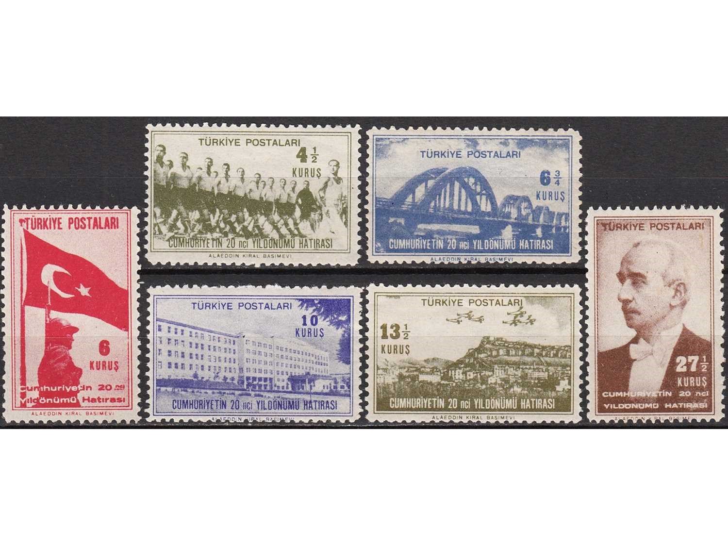 1943 CUMHURİYET'İN YİRMİNCİ YILDÖNÜMÜ TAM SERİ MNH KATALOG: 215 TL