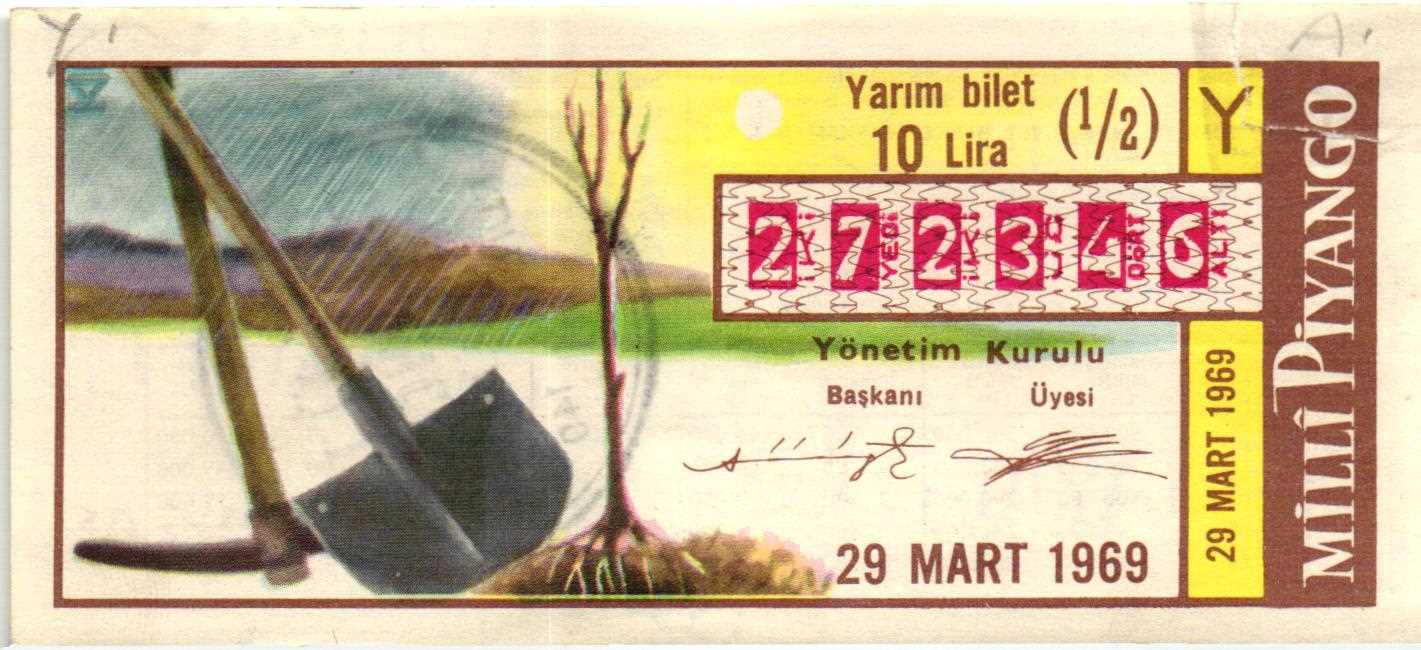 29 MART 1969 YARIM BİLET SAĞ ÜST BANTLI HALİYLE