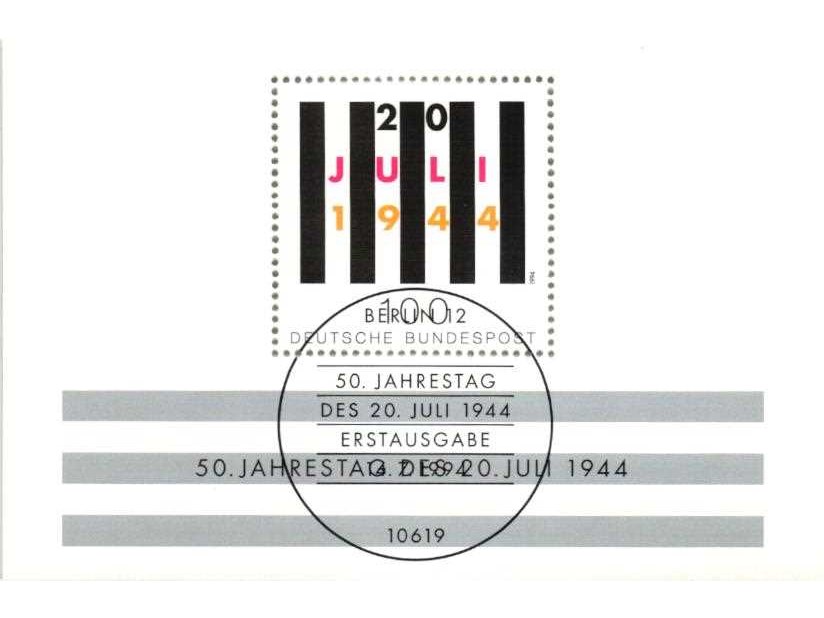 ALMANYA 1994 NAZİZME KARŞI İSYANIN 50. YILDÖNÜMÜ İLK GÜN DAMGALI BLOK (105 x 70 mm) MNH