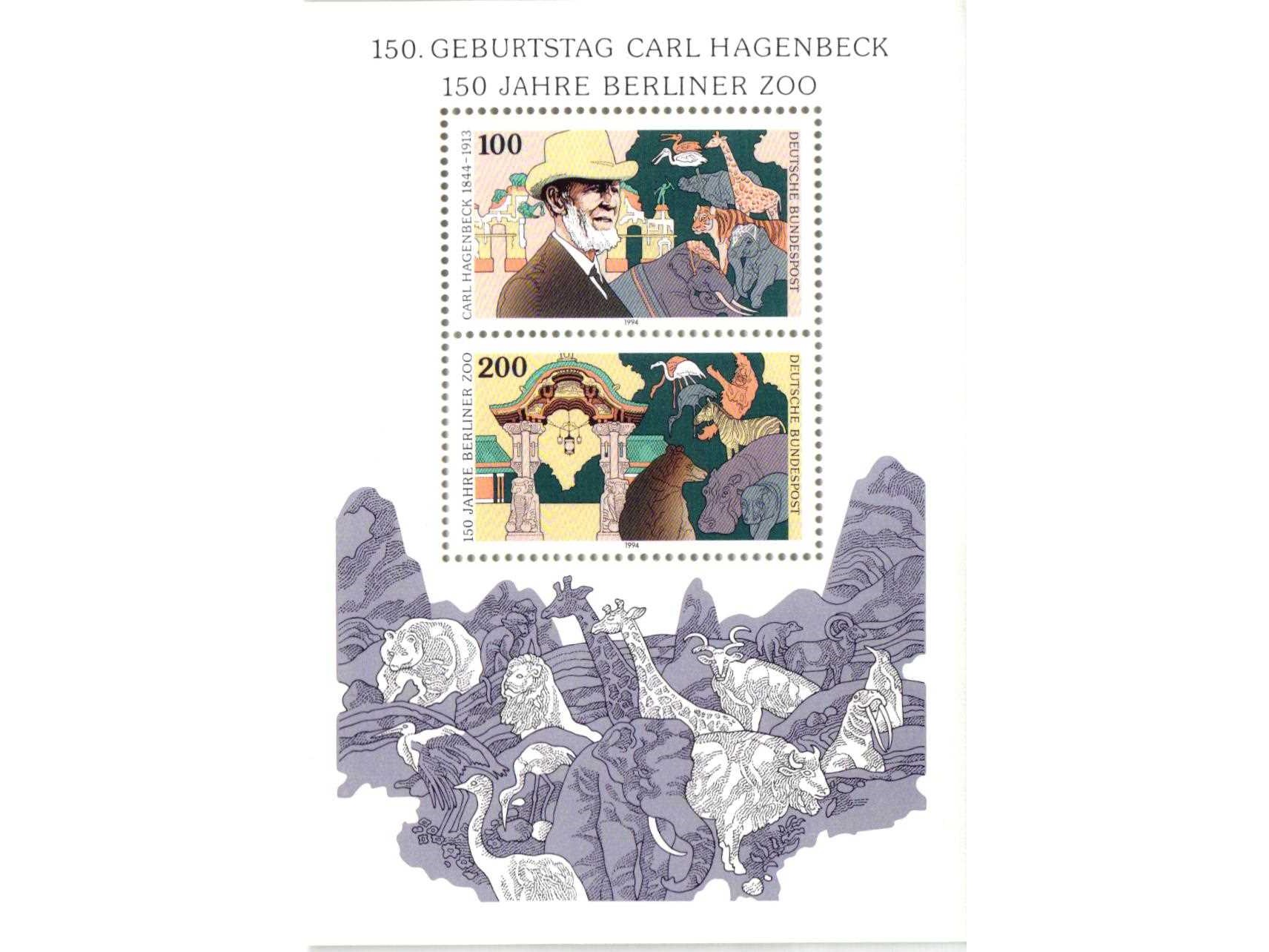 ALMANYA 1994 KARL HAGENBECK HAYVAN TÜCCARI DOĞUMUNUN 150. YILDÖNÜMÜ BLOK (77 x 108 mm) MNH