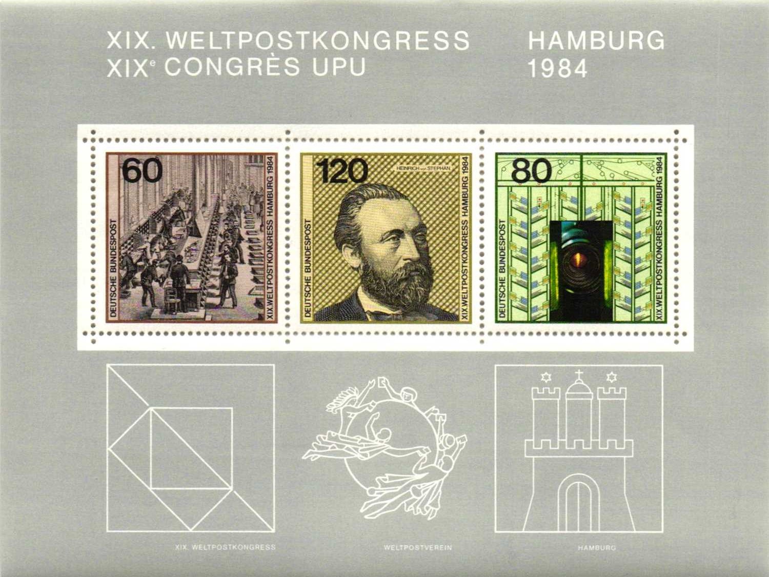 ALMANYA 1984 EVRENSEL POSTA BİRLİĞİ BLOK (105 x 139mm) MNH