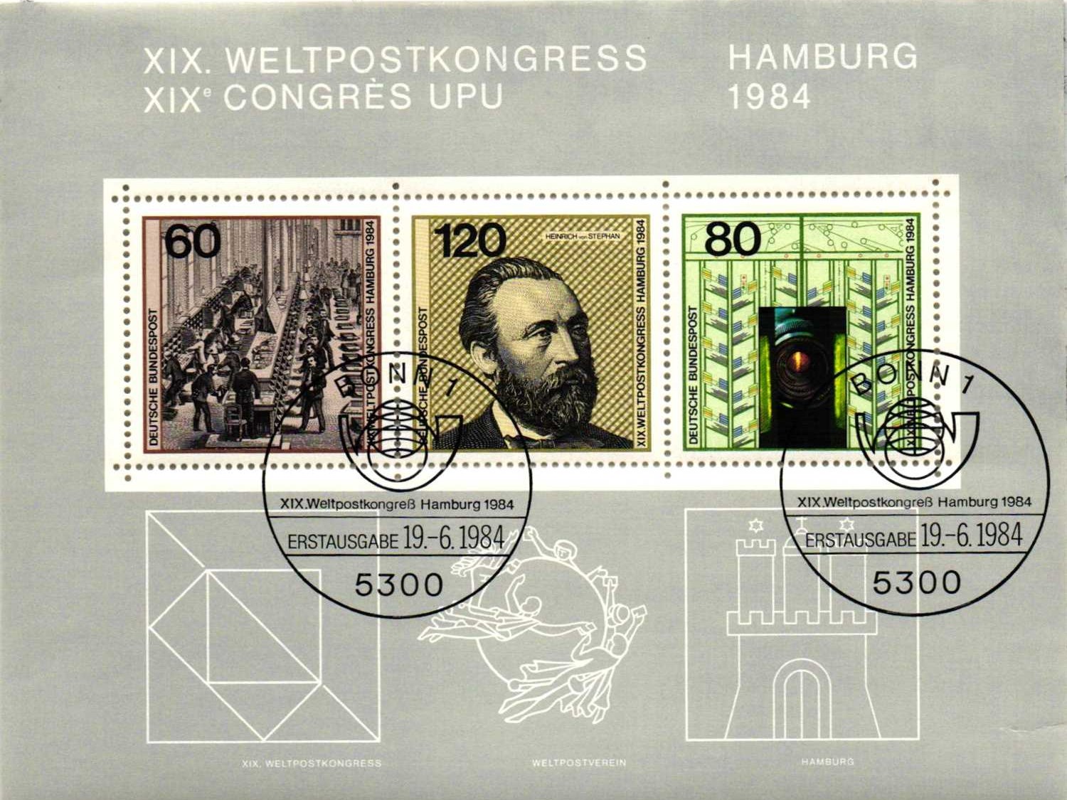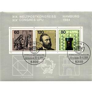 ALMANYA 1984 EVRENSEL POSTA BİRLİĞİ İLK GÜN DAMGALI BLOK (105 x 139mm) MNH