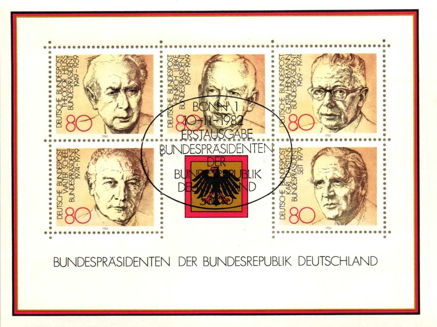 ALMANYA 1982 FEDERAL CUMHURİYET BAŞKANLARI İLK GÜN DAMGALI BLOK (130 x 100 mm) MNH